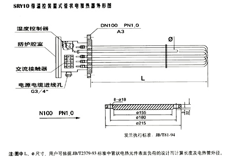 SRY10管狀電加熱器適用于敞開式或封閉式油箱中加熱油用,也可以加熱水和比油傳熱好的其它介質。